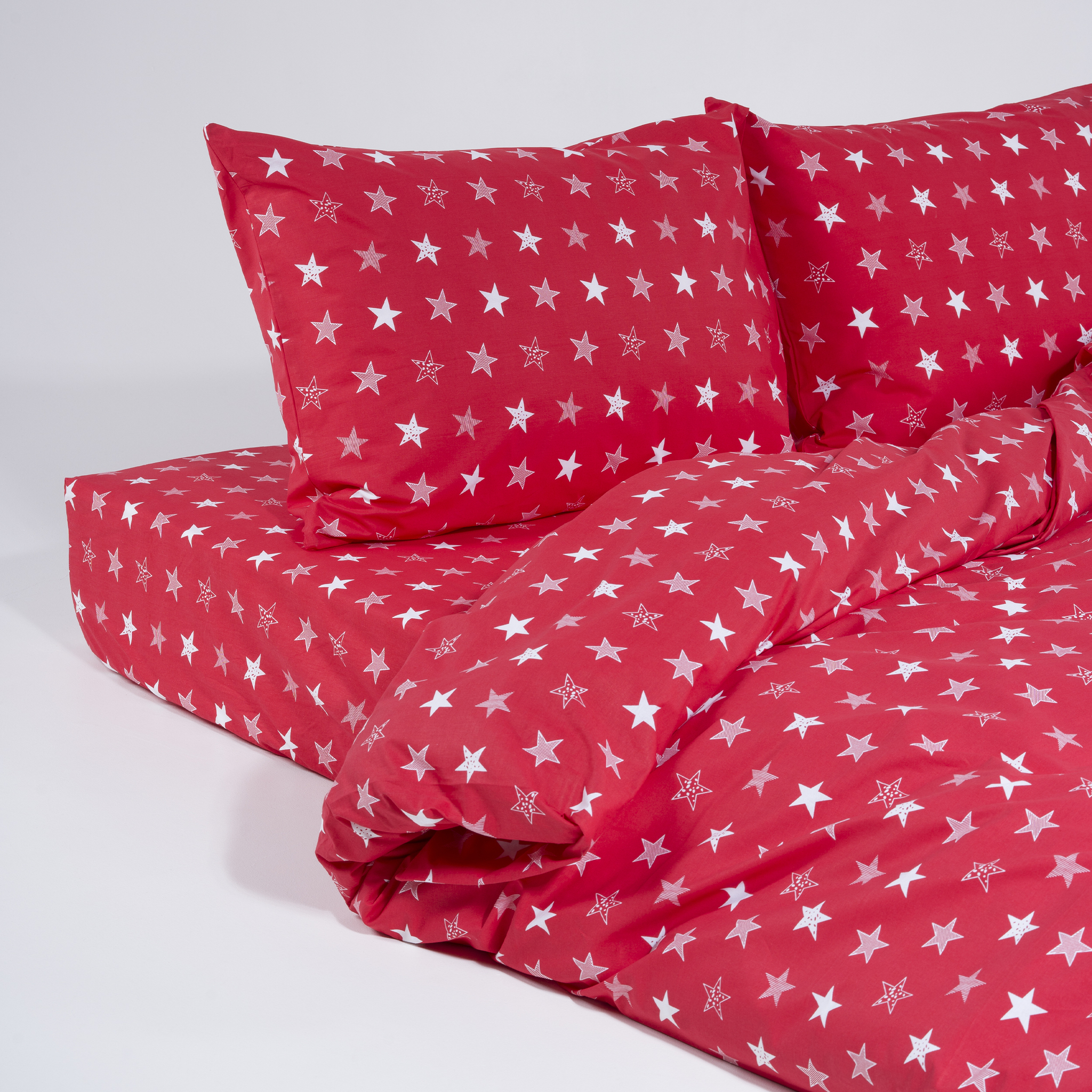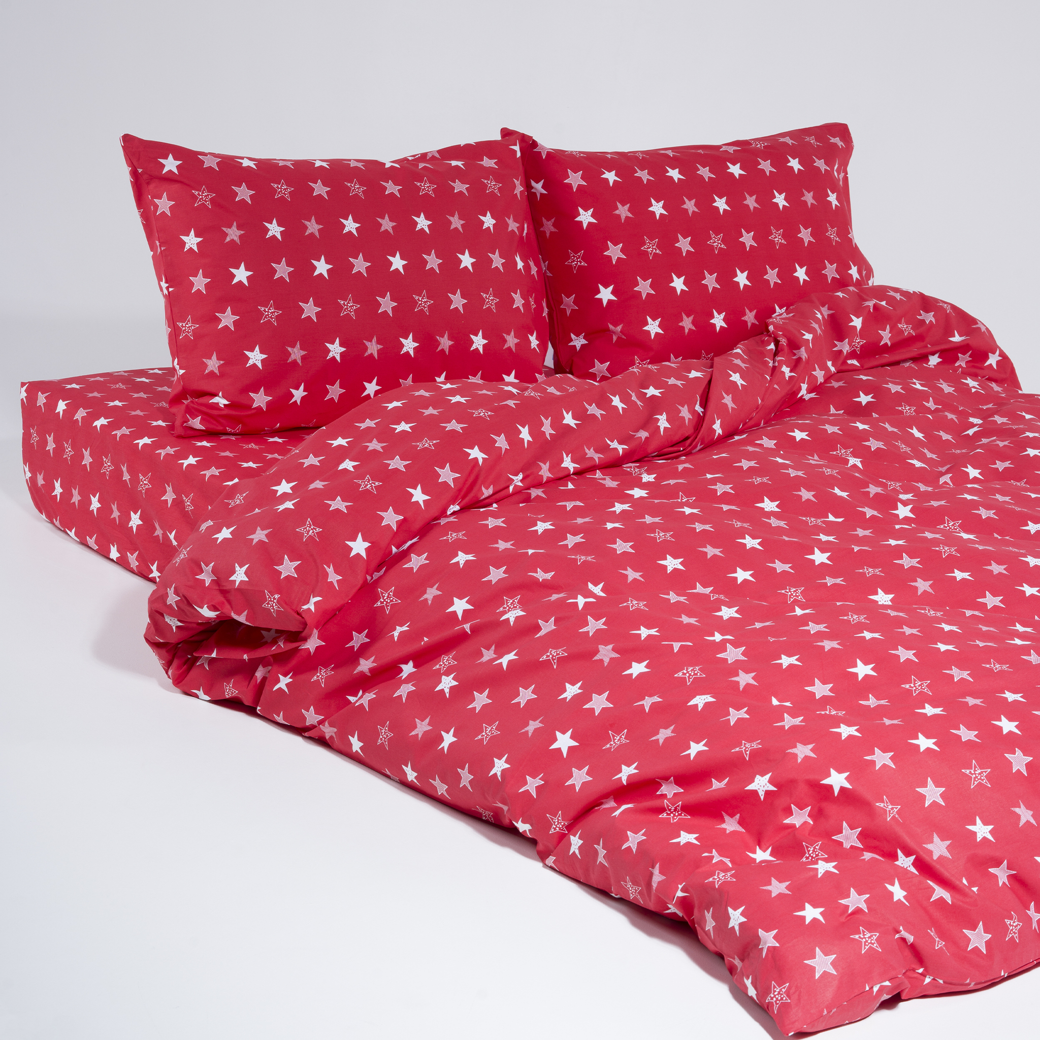 Комплект постельного белья для двух человек, которые пользуются двумя разными одеялами. Из натурального растительного хлопка.