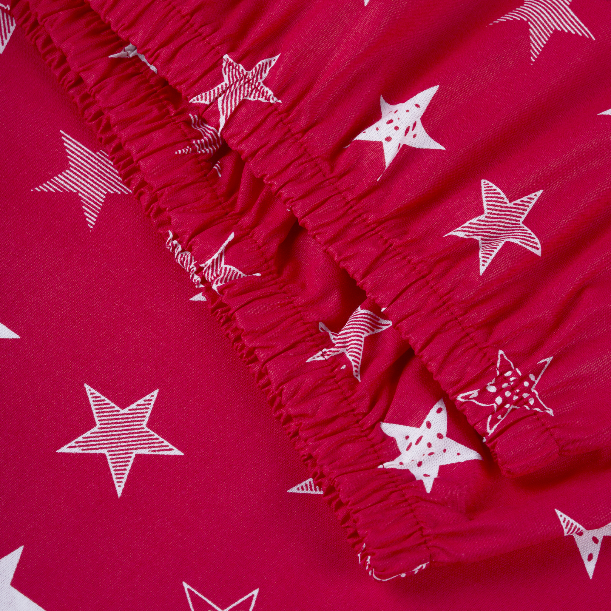 Ткань ранфорс не тянется поэтому простынь на резинке нужно выбирать по размеру матраса. Тогда на матрас она наденется плотно и будет натянута как струна, именно в этом плюс и удобство простыни на резинке.