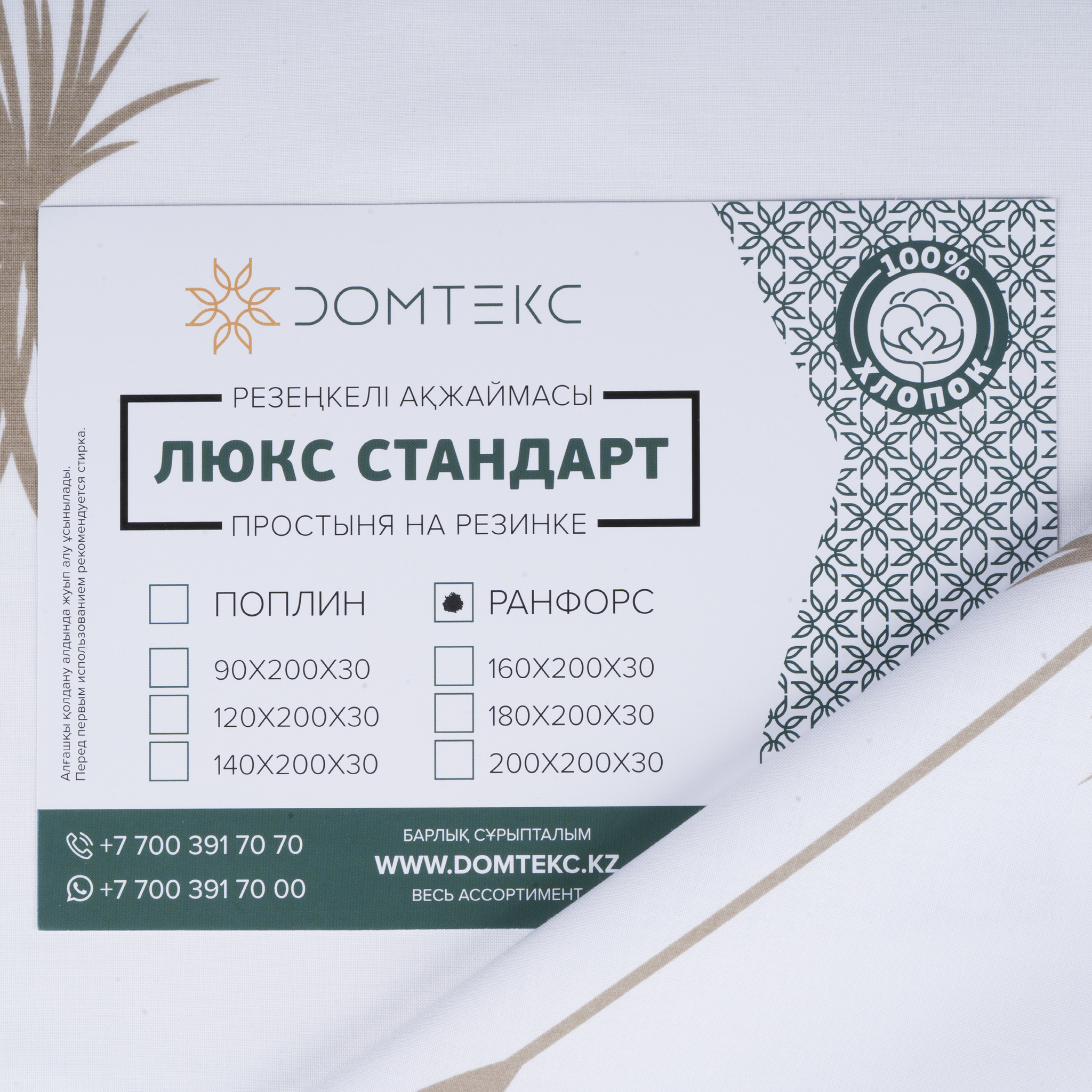 Ткань ранфорс не тянется по этому простынь на резинке нужно выбирать в строгом соответствии с размером матраца.
