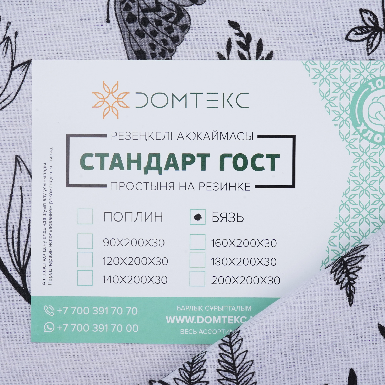 Простыня на резинке Вилена, 160x200х30 см. , бязь DOMTEKC